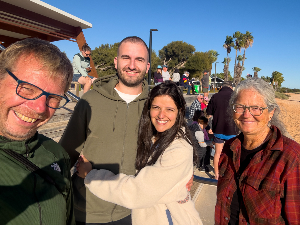 Bei einem kurzem Small Talk lernen wir Philipp und Ines kennen. Sie ist gebürtige Brasilianerin, er waschechter Schwarzwälder aus Deutschland. Sie nutzen ihre beider Auszeit, um für ein paar Monate Australien und später noch Ines’ Heimat Brasilien zu bereisen. Ines hat ab November eine Anstellung zur Ausbildung in der Agrarwissenschaft gefunden. Sogleich können sich Ma und sie in Fachgespräche vertiefen. Schade, dass beide heute nach der «Delfin Show» wieder abreisen werden. Zum Ende ebendieser kommen noch 2 Volunteers mit jeweils einem Eimer mit ein paar Fischen ins Spiel. Auch wenn die Eimer nicht hoch voll mit Futter für die Delfine sind, bekommen diese als Belohnung für ihr Erscheinen einen kleinen «Snack». So ganz ohne «Nahrungsergänzungszutaten» scheint es doch nicht zu gehen…