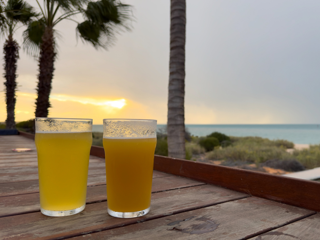 Nachmittags, kurz vor dem Sonnenuntergang, setzt der vorhergesagte Starkwind ein. Wir müssen aufpassen, dass uns weder Tisch noch Stühle weggeweht werden.