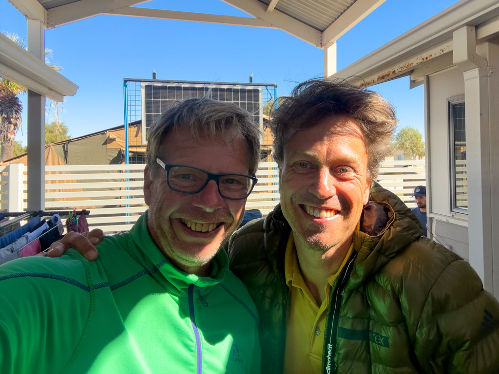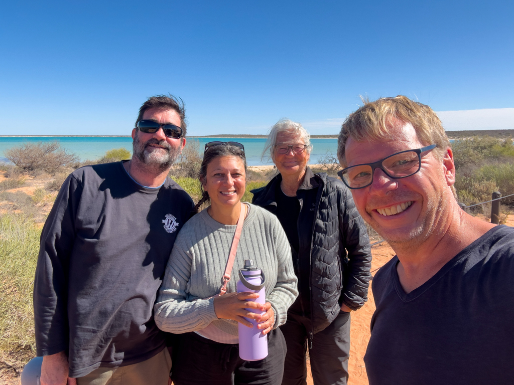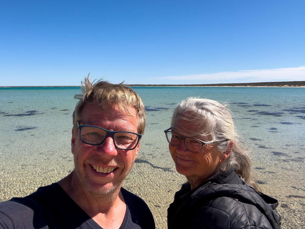 Als wir noch nicht mal aus Eneli ausgestiegen sind, grüssen uns plötzlich Christian & Caroline. Jo hatte beide abends in der Camp Kitchen in Wooramel getroffen und einen lustigen Plausch mit ihnen gehalten. Um ehrlich zu sein: Jo hätte sie nicht wieder erkannt, aber die beiden umgekehrt ihn schon 😉.