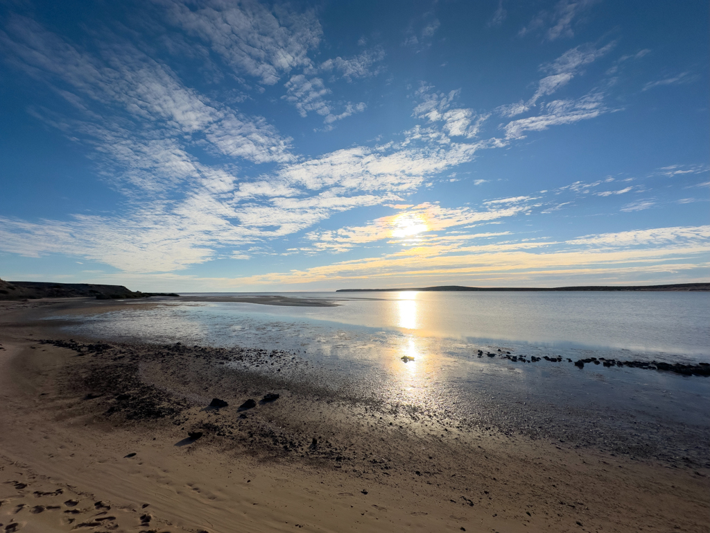 Morgen gibt es nochmals eine nur sehr kurze Fahrt nach Denham zurück. Weil uns niemand drängeln wird, möchten wir noch von hier aus erst den Sonnenaufgang bewundern und ein paar warme Sonnenstrahlen geniessen.