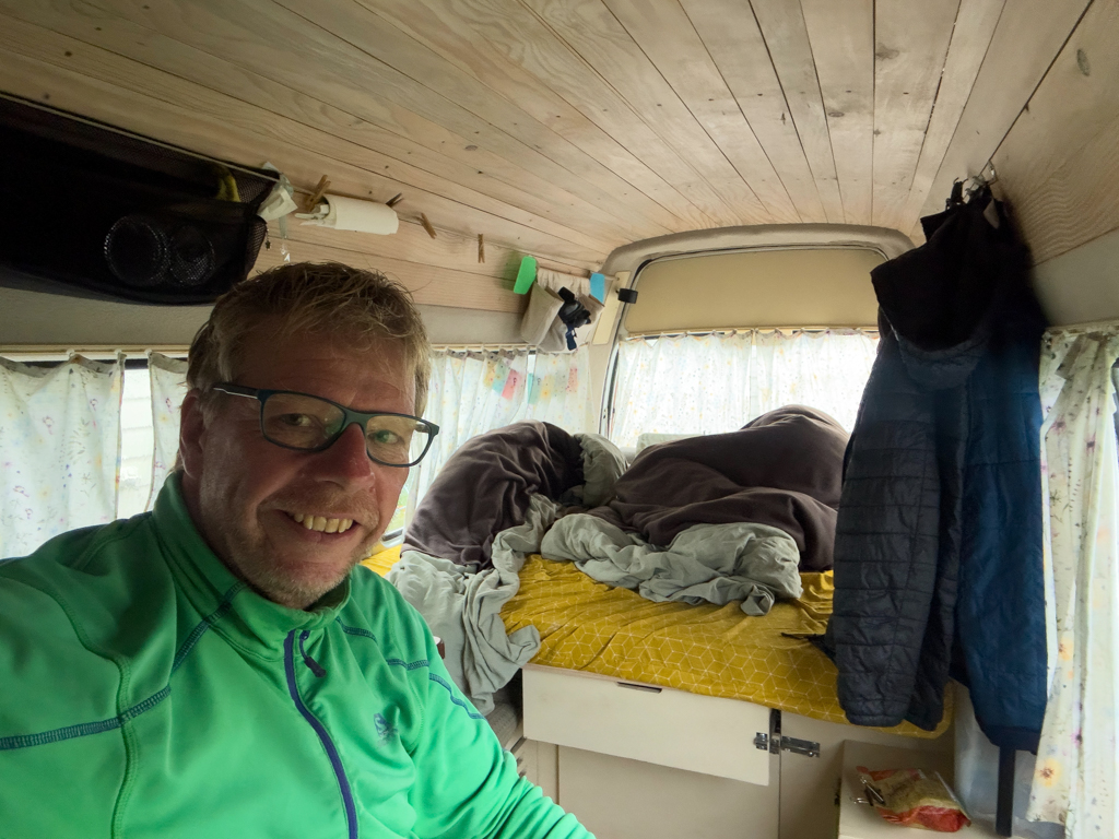 Ausser dass es ständig regnet, stürmt und kübelt, ist es auch noch kalt geworden. So hocken wir den ganzen Tag und die ganze Nacht in unserer trockenen Eneli. Nur zum Kochen für das Znacht stürzt sich Ma am Abend in die Camp Kitchen und Jo sich später für den Abwasch ebenfalls.