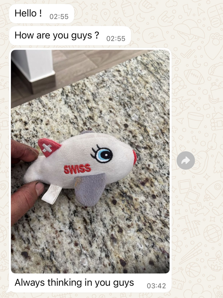 Jo bekommt eine überraschende WhatsApp von Axel aus Santa Lucía in Guatemala! Bei ihm und seinem Freund Rodrigo waren wir mit unserer Martha vor gut 1 ½ Jahren zu einem grösseren Service. Wer sich vielleicht erinnert, weiss noch, dass sich Axels kleine, damals 2-jährige Tochter Marisa, in unsere Reisebegleiterin Sam so sehr verliebte, dass diese kurzerhand von ihr adoptiert wurde. Alex schickt mit diesem Andenken in der Hand schnell ein Foto um die halbe Welt. NATÜRLICH erinnern wir uns noch an die glücklichen Tage bei ihm in seiner Werkstadt «Axel’s Place»!