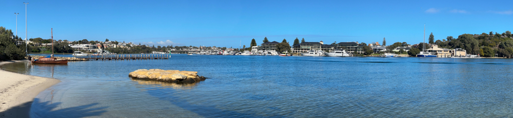 Morgen ist erst der «Packtag», heute wollen wir uns etwas bewegen und Fremantle erkundigen. Später am Nami ist das Zoom, somit wird es für Perth zeitlich nicht reichen. Nicht weit von hier fliesst der Swan River – von John wird uns ein Spaziergang entlang dieses Flusses in die Stadt sehr empfohlen. Es sei nur etwas mehr als eine Stunde zu Fuss. «Das machen wir», wird sofort entschieden. Gerade scheint die Sonne, aber die schwarzen Regenwolken sind noch nicht weit genug weg. Die Regenjacken halten auch schon bald die ersten Regenschauer ab. MapOut informiert Ma über die aktuelle Wegstrecke. Jetzt merken wir, dass etwas für uns nicht so richtig zusammenpasst. 7.5 km Weg in etwas mehr als 1 Stunde. Entweder machen wir einen Umweg oder John joggt diese Strecke (später wissen wir mehr darüber).