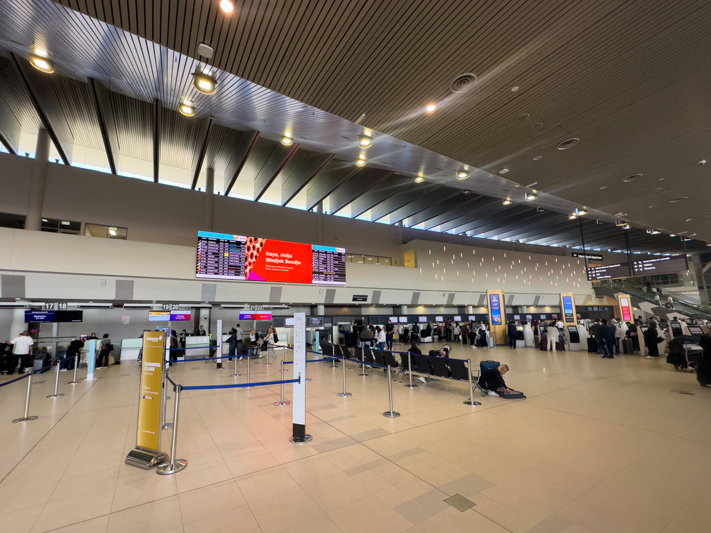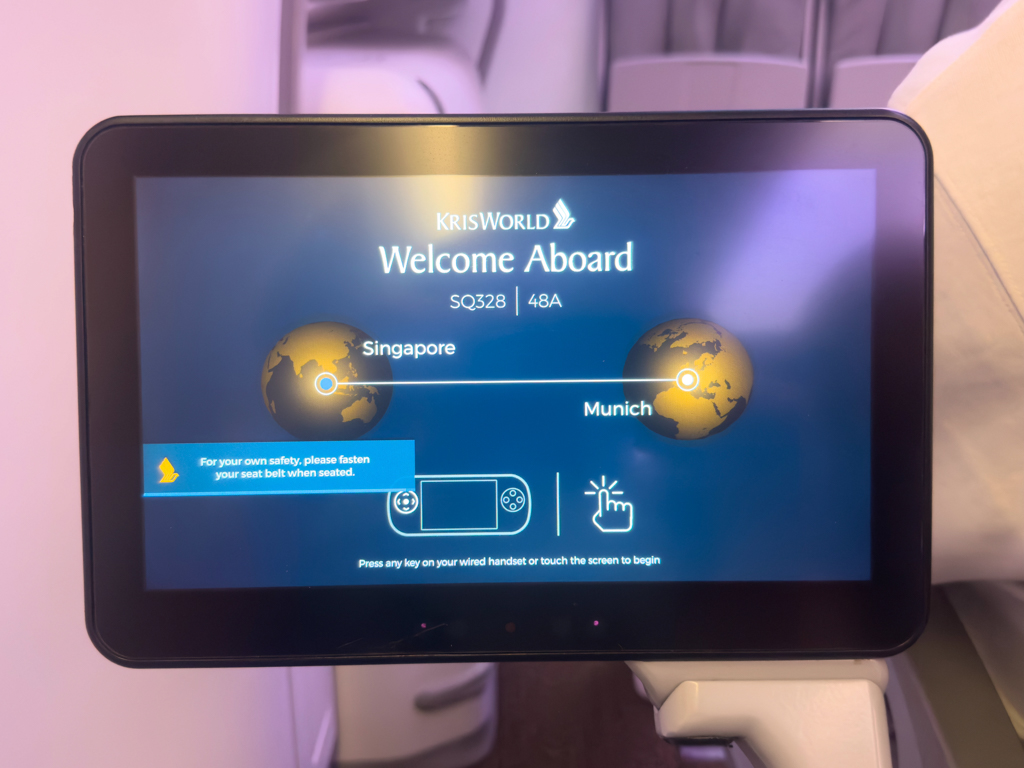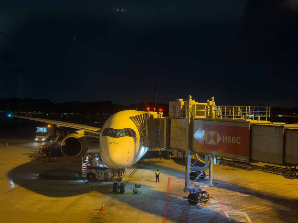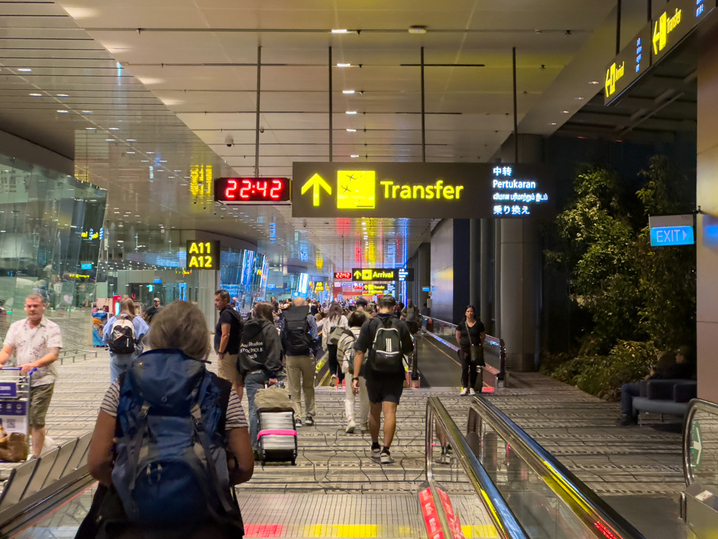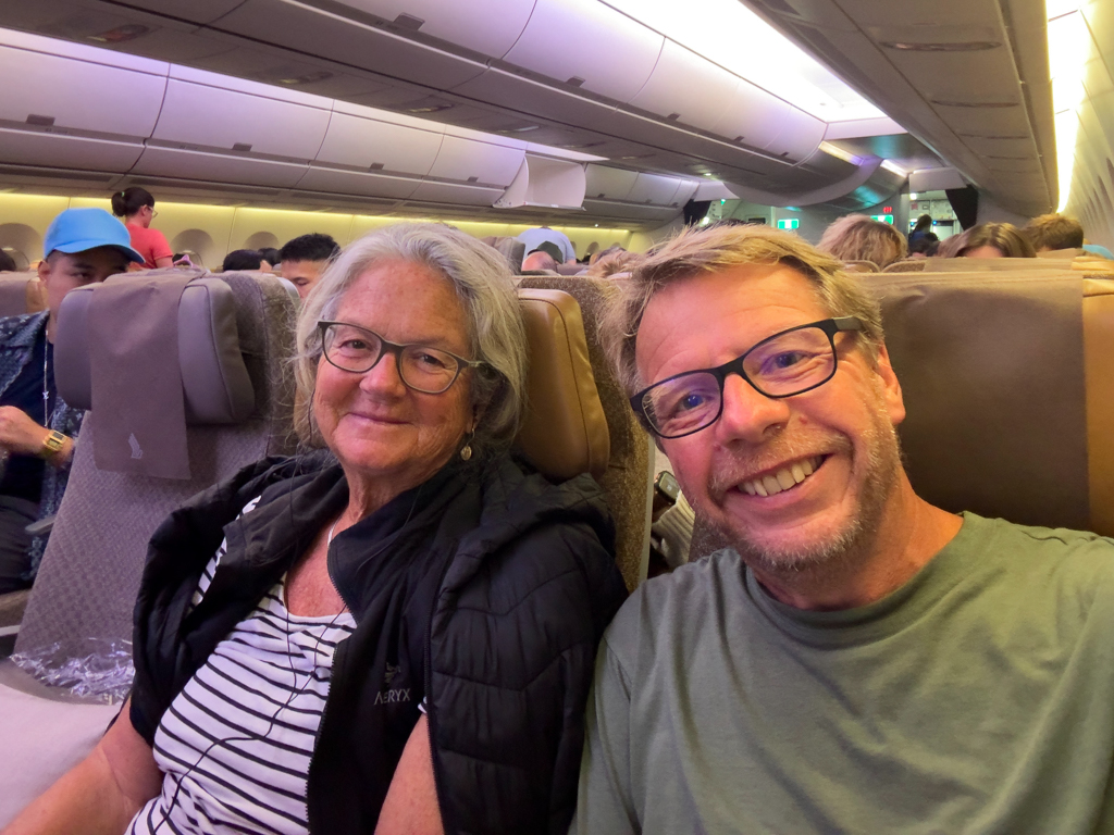 Die Kontrollen klappen alle wie am Schnürchen. Sonst war es schon mal Jo, der zu einem «Sondersetting» gebeten wurde. In Singapore geht es dann stracks und zügig im Transit durch den grossen Airport. Nach einer kurzen Wartezeit sind wir auch schon an Bord. Extra für Jo hat Ma einen Sitzplatz mit Beinfreiheit gebucht. Sie selbst begnügt sich mit einem normalen Sitzplatz. Der Flieger ist zu ihrem Glück nicht ganz ausgebucht. Der dritte Sitzplatz in unserer Reihe bleibt leer. So kann es sich Ma auch etwas bequem machen.