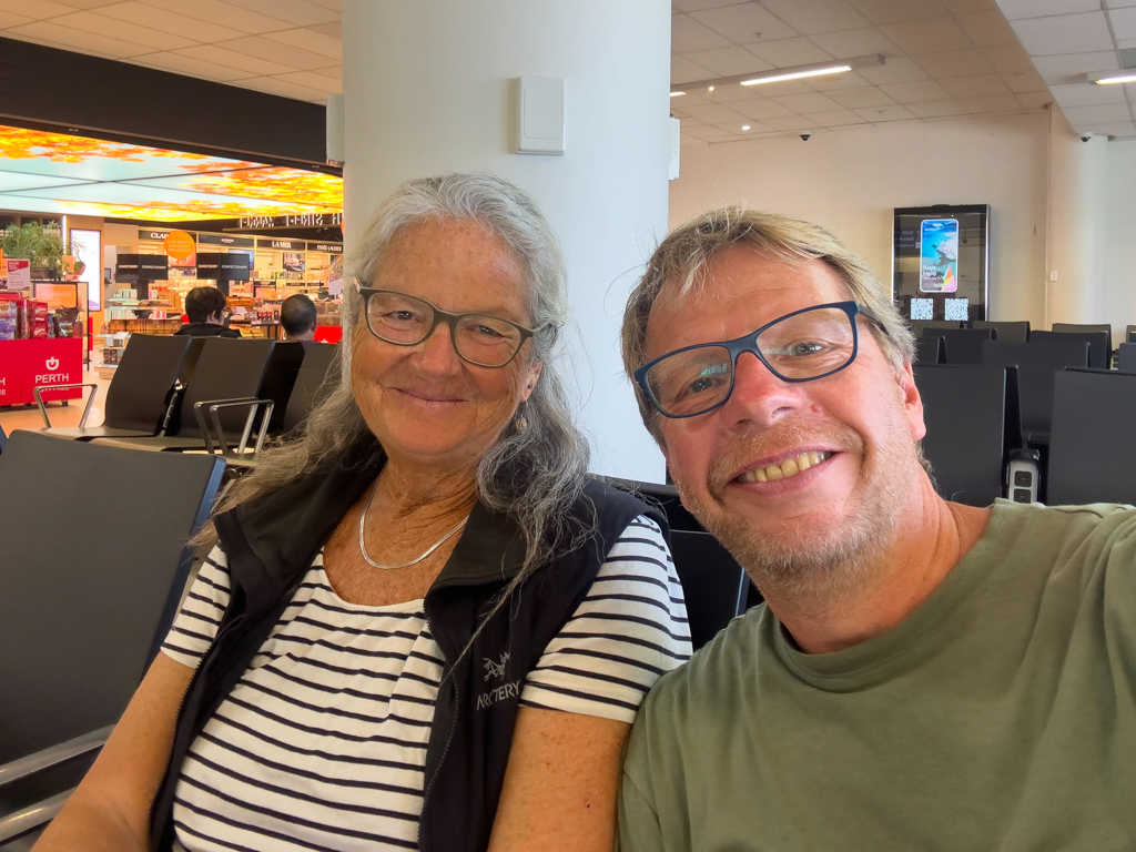 Eneli wird wie vereinbart am Mittag zur Garage gefahren. Jetzt haben Joel und sein Team 2 Wochen Zeit, um Eneli ihre Fürsorge anheimfallen zu lassen. Der georderte UBER Fahrer benötigt nur wenige Minuten zum Vorfahren. Nach gut einer halben Stunde steigen wir auch schon am International Terminal des Flughafens Perth aus.