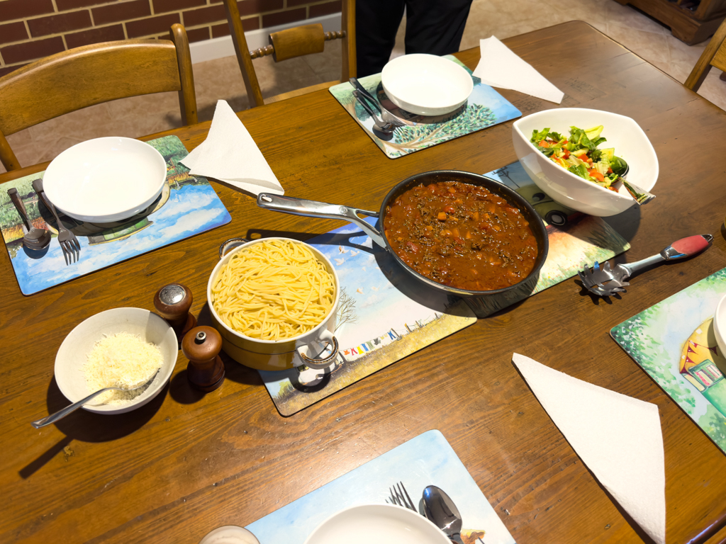 Entspannter als auf dem Hinweg, fahren wir retour zu John & Joan. Während Ma ihre berühmte SpaghBolo zaubert, putzt Jo noch etwas am «Kabel» rum. Erst scheint das Festmahl viel zu viel zu sein, dann bleibt zum Schluss doch nur ein klitzekleiner Rest übrig 😊