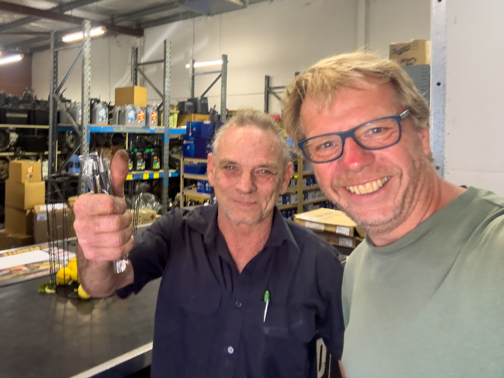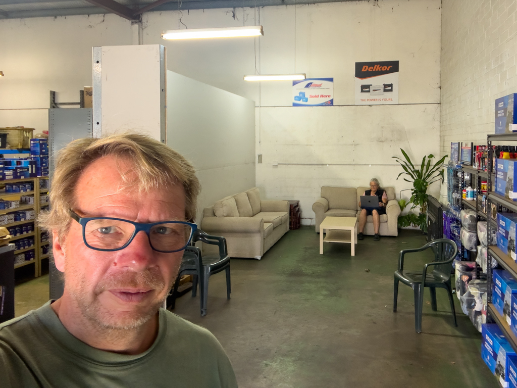 Wir freuen uns dennoch, wieder unterwegs sein zu dürfen. Wobei wir erst noch bei Ron, DEM Getriebespezialisten, vorfahren müssen. Auf dem Weg zu seiner Spezialgarage im Norden von Perth halten wir noch für eine Kühlschrankfüllung in einem Supermarkt.