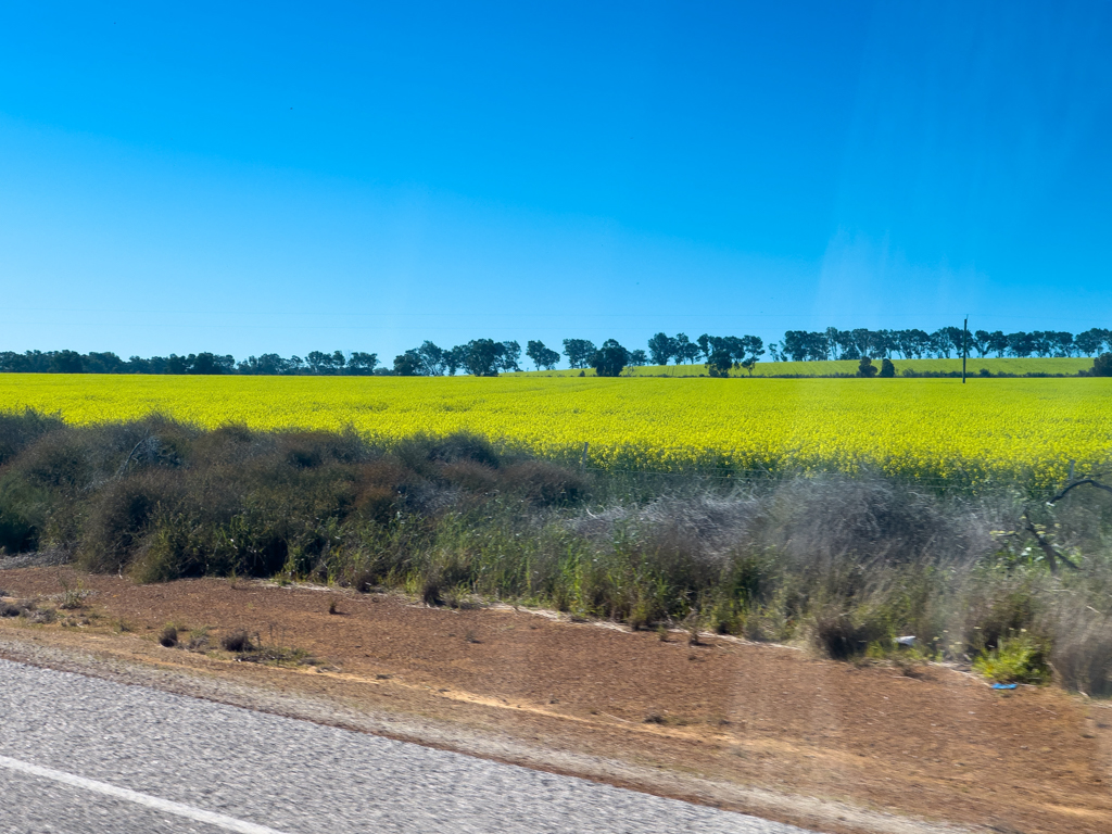 Immer wieder sehen wir unterwegs grosse Flächen mit stehendem Wasser, die auf die heftigen Regenfälle der letzten Tage hindeuten. Hoffentlich ist das auch was für uns auf dieser Farm – nicht, dass wir da irgendwo steckenbleiben. SO ein Abendteuer brauchen wir dann doch nicht. Aber der Regen lässt auch die Landschaft in sattem Grün und bunten Farben erblühen. Saftige grüne Weideflächen, knallgelbe Rapsfelder und immer wieder blühende Blumen vielerlei Farben erfreuen unser Auge. Ohne «Schlammprobleme» fahren wir bei der Station vor. Für Übermorgen buchen wir eine Tour, so bleiben wir auch direkt 3 Nächte.