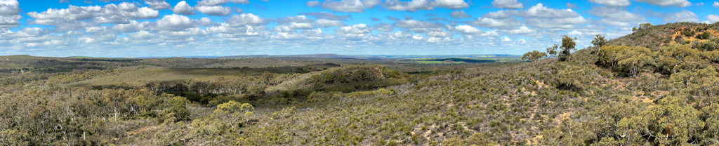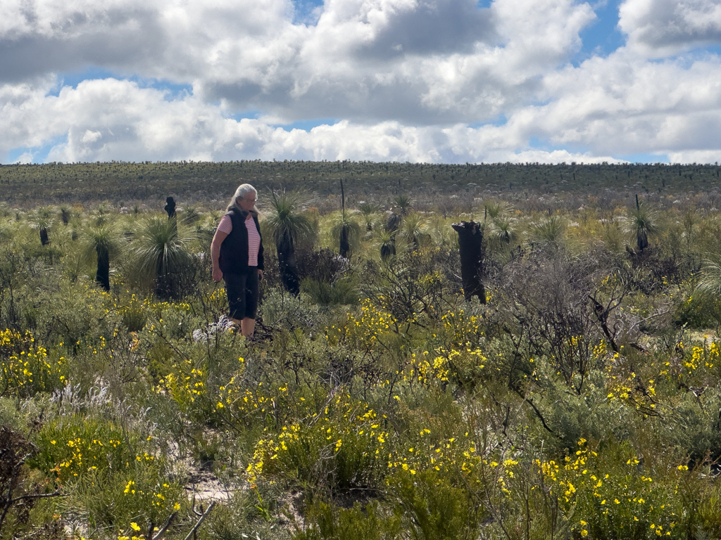 Etwa in der Mitte des Loops machen wir zuerst eine Wanderung auf dem Gairdner Trail mit einer Verlängerung zu einem Lookout. Den Weg auf den Mt. Lesueur machen wir heute nicht. Auch wenn wir sonst schon die rechten Gipfelstürmer sind und Mt. Lesueur mit knapp 300 m eher ein Hügel als ein Berg ist, möchten wir uns mit unseren Erkältungen nicht überanstrengen. Lieber in der Ebene bleiben.