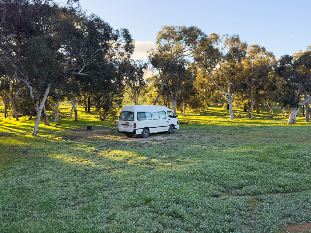 Zum Karda Campground ist es nur noch eine knappe ½ Std. zu fahren. Unser Stellplatz liegt etwas im Grünen, was sonst eigentlich recht schön ist. Doch morgen früh soll schon Regen fallen und oh wir dann auch noch gut wegkommen, bleibt einfach nur zu hoffen und abzuwarten.