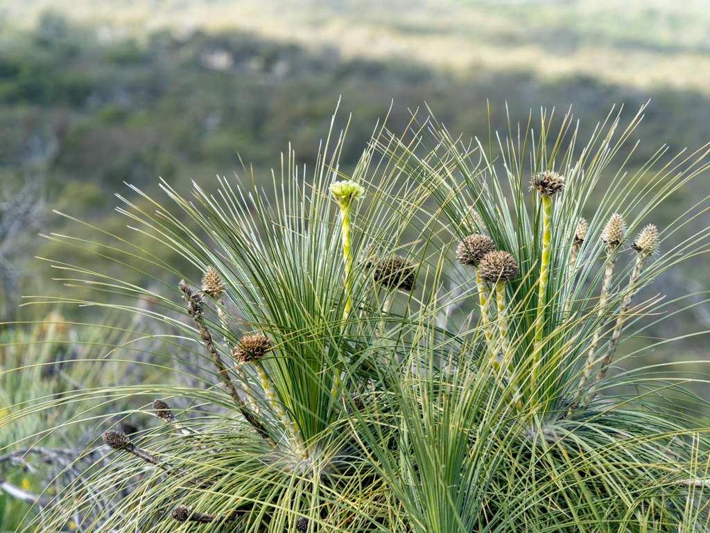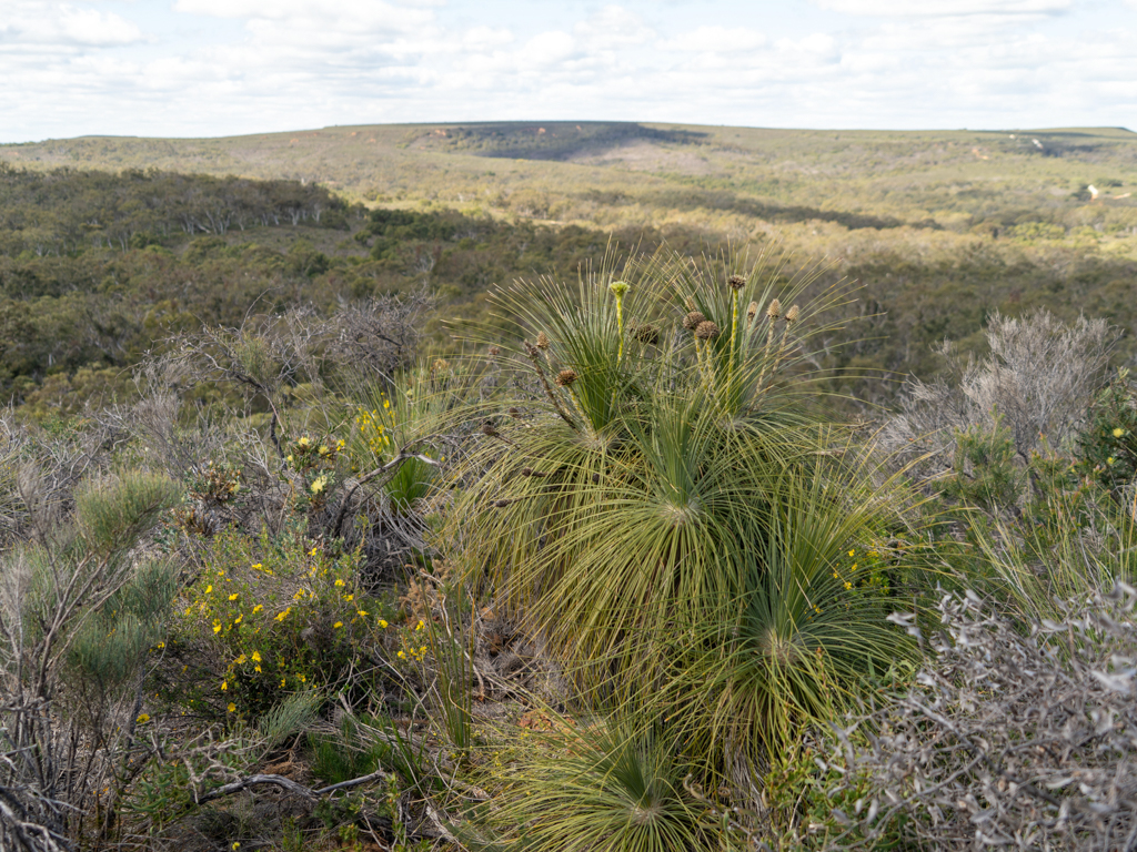 Auf dem Rückweg haben wir noch beim letzten Lookout mit Sicht über einen grossen „Wald“ von Grasbäumen.