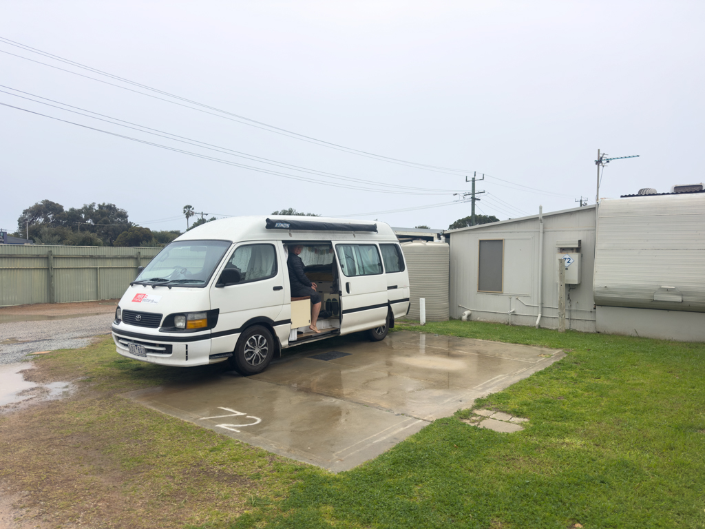 Ma findet noch einen ansprechenden Campervan in einer Facebookgruppe. Es ist einer so wie Eneli einer ist und preislich (scheinbar nicht nur) für uns attraktiv. Mit ein bisschen Willen von uns allen sollten wir schon noch zusammenkommen. Schnell ist der Kontakt zum jungen Guilhem hergestellt. Um 15:30 h seiner Zeit, was bei uns 11:30 h heisst, wird ein VideoCall vereinbart. Das passt uns gut ins Konzept. Die Fahrt bis nach Jurien Bay ist schnell vollbracht. Im Caravan Park gibt’s für uns auch noch einen kleinen Sonderrabatt, weil wir ohne vorbuchen vorbeigekommen sind. Allerdings wird unser Platz erst um 11 Uhr frei. Der Caravan Park ist so wie man sie kennt: Man rückt sich etwas auf die Pelle und kann dem Nachbarn auf den Teller schauen.