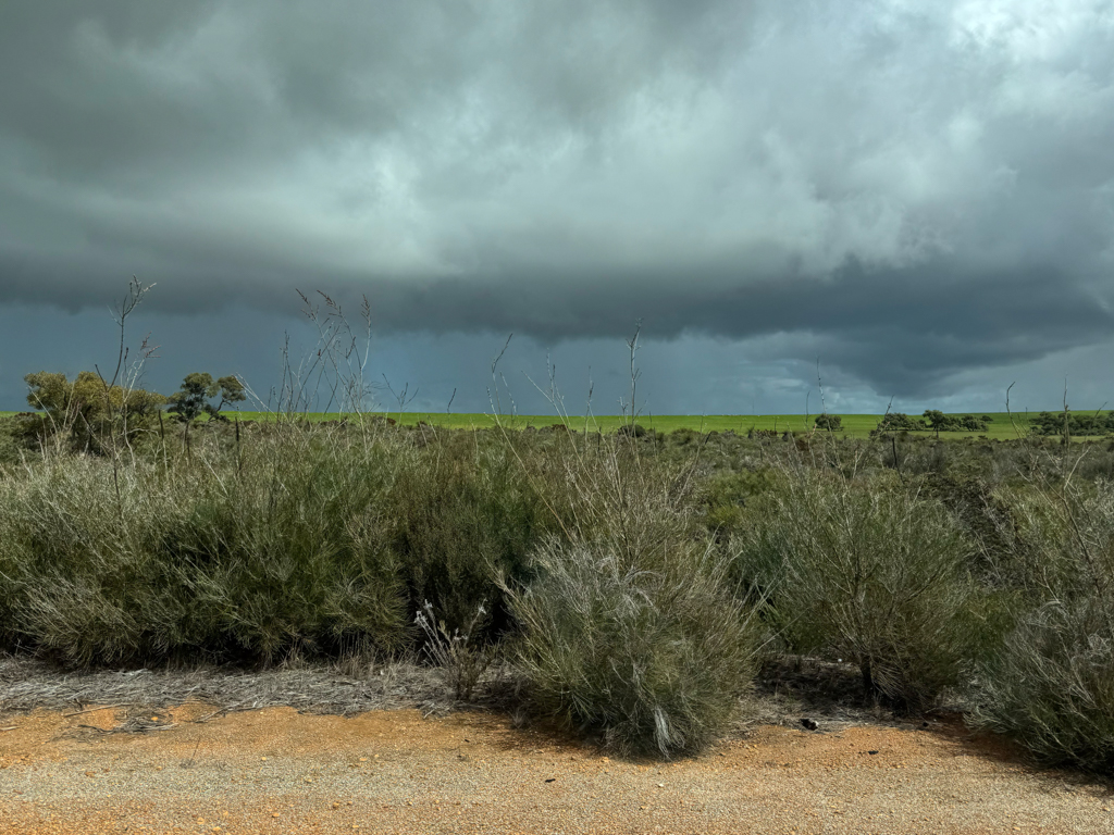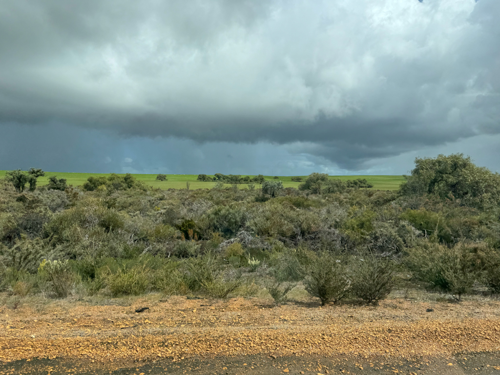 Die knapp 140 km bis nach Coorow geniessen wir zwischen Regengüssen und Sonnenschein. Heute scheinen wir fast die einzigen zu sein, die unterwegs sind. Allein cruisen wir durch die immer wieder unterschiedliche Landschaft am Wegesrand. Mal ist es trist und grau, dann wieder bunt und farbenfroh, mal kahl ohne Bewuchs, mal mit viel Buschwerk, Sträuchern, Blumen und Bäumen.