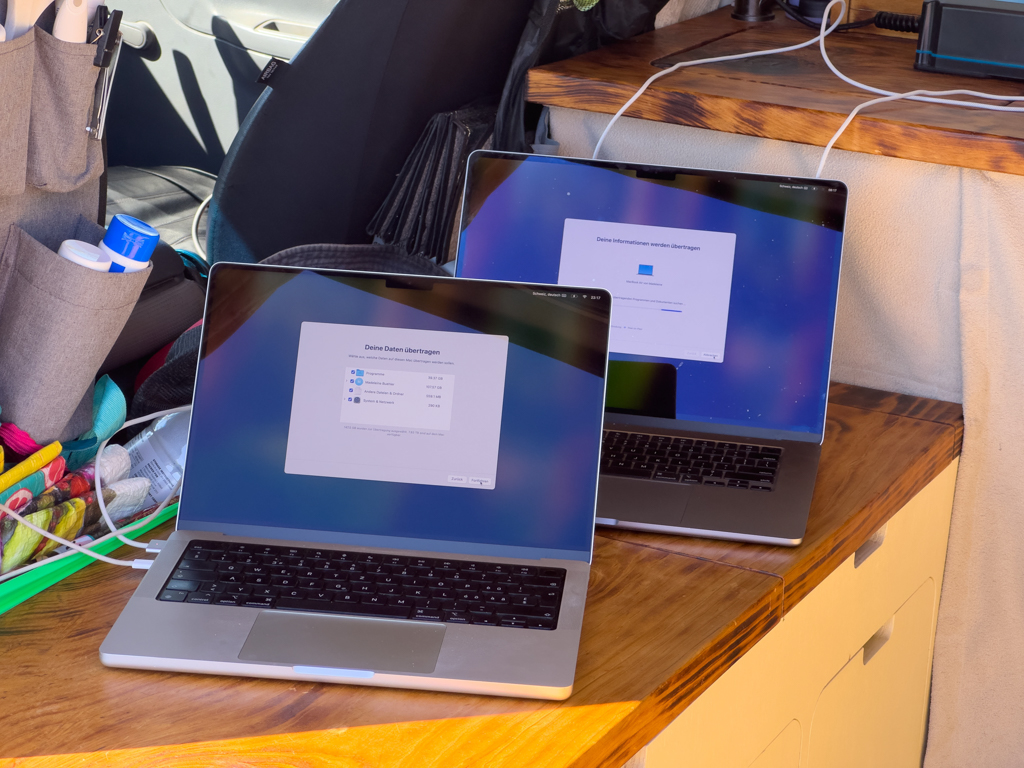 Mittags ist es dann so weit. Ma’s Kischtli wird aufgeklappt und im Display sind die Begrüssungen zu lesen 😁😁. Nicht nur Ma ist mehr als erleichtert. Endlich kann sie wieder mit ihrem gewohnten Laptop arbeiten. Von der Schweizer Tastatur ganz zu schweigen.