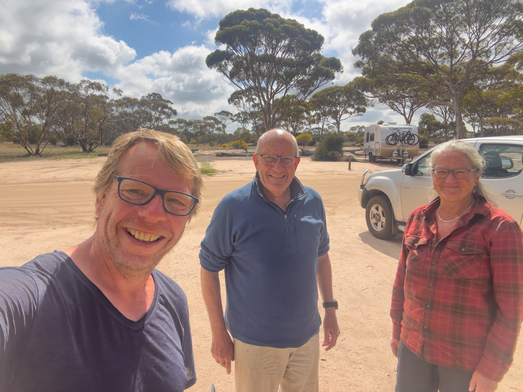 Bei unserem Stellplatz angekommen sehen wir, dass Brett fleissig arbeitet. Vor Ma’s VideoCall gönnen wir uns einen leichten Salat zum Apéro. Während Ma ihren Call macht, kommt Brett mit einem kalten Bier in der Hand zu Jo. Es beginnt für beide eine äusserst interessante Plauderei. Ein Wort gibt das Stichwort für das Nächste und so vergeht die Zeit wie im Fluge. Als eigenständiger Sicherheitsberater ist er in vielen Bereichen tätig, nicht zuletzt auch für die Regierung. Mittlerweile ist er selbständiger Berater und kann auch remote arbeiten – jeweils von 5 Uhr morgens bis um ca. 10 Uhr. Im Moment ist er eigentlich zum Golf spielen unterwegs nach Kalgoorli. Dort beginnt der Nullarbor Links, die längste „Golf-Strecke“ der Welt!