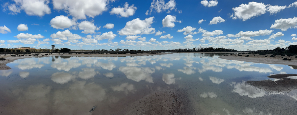 Vom Visitor Center geht es zum Lake Magic, in dem sich der Himmel und die Wolken herrlich spiegeln. Anschliessend geht es weiter zum Wave Rock Resort. Dessen salzhaltiger Pool lädt so manchen zu einem Schwumm ein. Fast wie im Toten Meer «floaten» die Schwimmer hier im stark salzhaltigen Wasser.