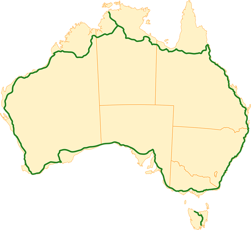 Der National Highway, oft auch nur als Highway 1 bezeichnet, ist mit etwa13’600 km die längste Fernstrasse Australiens. Der Highway 1 folgt dem Verlauf der Küste und umrundet den gesamten australischen Kontinent. Er gehört mit der Panamericana und dem Transsibirien-HWY in Russland zu den längsten nationalen Strassenverbindungen weltweit. Er verbindet die Hauptstädte Brisbane, Darwin, Perth, Adelaide, Melbourne, Sydney und Hobart.