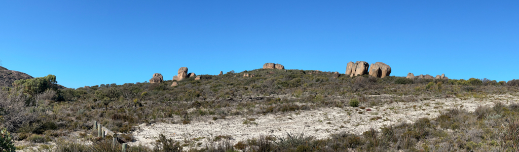 Nach dem Zmorge machen wir uns auf die Wanderung zur Thistle Cove. Diese Bucht ist die mittlere und kleinste der drei Buchten hier im Cape Le Grand N.P., als die da wären: Hellfire Bay, Thistle Cove und Lucky Bay.