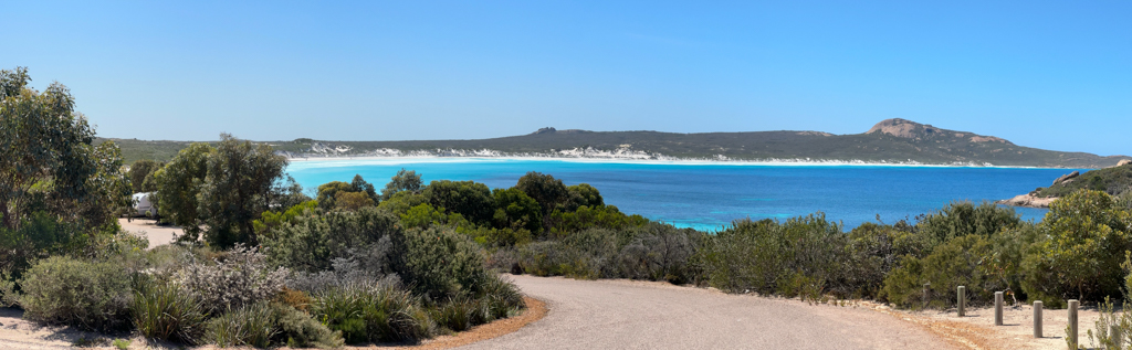 Ab jetzt geht’s nur noch «down hill», 50 m runter. Die Thistle Cove ist ein kleines ruhiges Juwel neben der grösseren und touristischen Lucky Bay, an deren Strand sich bei sonnigen Wetter die Autos wie auf einem Parkplatz aneinanderreihen. Und das, wo wir uns hier doch im Cape Le Grande Nationalpark befinden!!