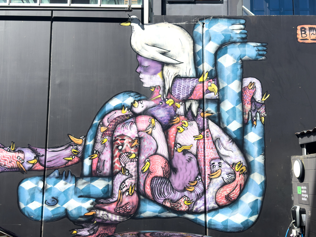 Nach 3 Stunden nehmen wir einen kurzen Snack in der Cafeteria zu uns und fragen bei Rebekka nach, was sie bisher in Wellington unternommen hat. Vielleicht treffen wir uns ja noch hier zu einem gemeinsamen Spaziergang? Als wir Manaaki um 3 Parkplätze weiter umparken, ist sie gerade im Museum. Sie macht einen halbstündigen Schnelldurchgang und so können schon bald zusammen wir los. Zu ihrem Glück braucht sie noch ein neues Paar Adiletten. Schnell sind diese im nächstgelegenen Schuhgeschäft gefunden – auch sonntags 😉