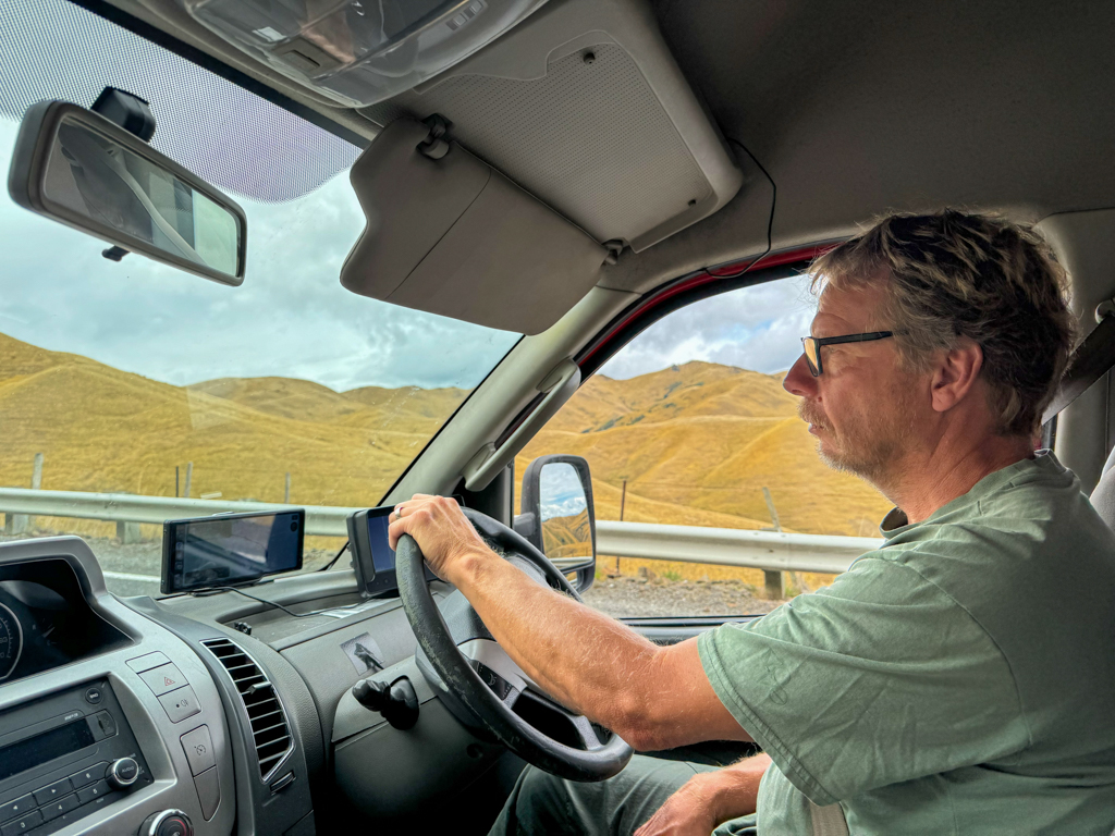 Nach einer guten ½ Std. machen wir für heute mit Manaaki unsere erste «Bergtour» über den Redwood Pass. Wobei der Redwood Pass eigentlich gar nicht sehr hoch ist, sondern nur etwa 197 Höhenmeter über dem umliegenden Gelände, ein eher sanfter Übergang, der sich durch die Berge schlängelt. Dennoch bietet er eine spektakuläre Berglandschaft. Überraschenderweise sind die Hänge hier nicht mehr grün bewaldet oder mit Büschen bewachsen, sondern sind nur noch ausgedörrte, oft steile, Grashänge. Viel Regen wird hier in der Gegend nicht fallen…