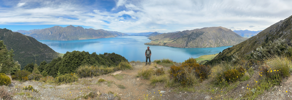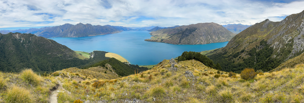 Schon beim ersten Schritt geht es recht steil bergauf. Diesmal ist der Weg allerdings nicht so krakelig wie der am Fox Glacier. Oberhalb der Baumgrenze bei ca. 900 m ist ein schöner Lookout, der zum Verweilen einlädt, uns allerdings nur kurz innehalten lässt. Wir möchten noch ein wenig höher hinaus.