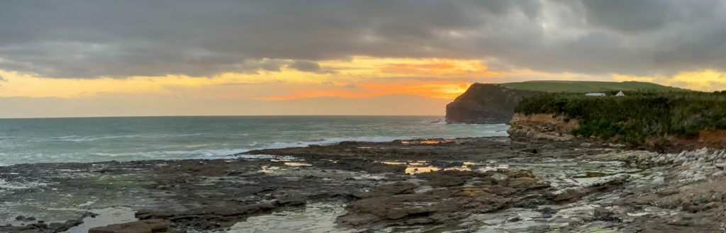 Nach einem windigen Küstenspaziergang macht Ma eine kleine Stärkung, bevor wir uns zu den Pinguinen aufmachen. Leider sind heute weder um 19 Uhr noch um 20 Uhr welche zu sehen und auch nicht am nächsten Tag um 12.30 Uhr. So ist das Wildlife nun mal. Dafür dürfen wir einen wunderschönen Sonnenuntergang geniessen.