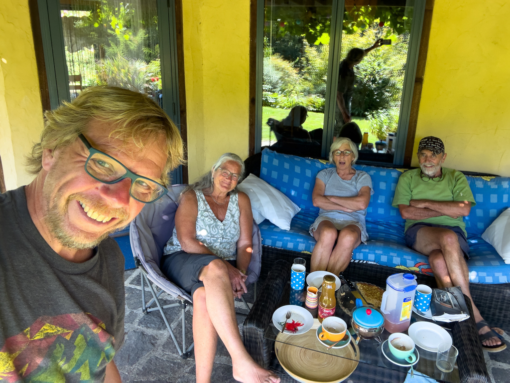 Auf der Terrasse wird zur «Nachbesprechung» Kaffee und Kuchen (leckere Rhabarberwähe!) serviert. Wir machen ab, dass wir alle vier am Dienstag zur Manaakis Kontrolluntersuchung dabei sind. Wir bereiten einen Vertrag vor und nach dem Ergebnis der Inspektion legen wir den Preis fest. Wir alle vier hoffen, dass es zum Schluss heisst: «Ohne Befund abgeschlossen»! Wir kommen uns vor, als wären wir bei guten alten Freunden zu einem fröhlichen Plausch eingeladen. Nur schwer trennen wir uns von den beiden, aber wir sehen uns am Dienstag ja schon wieder…