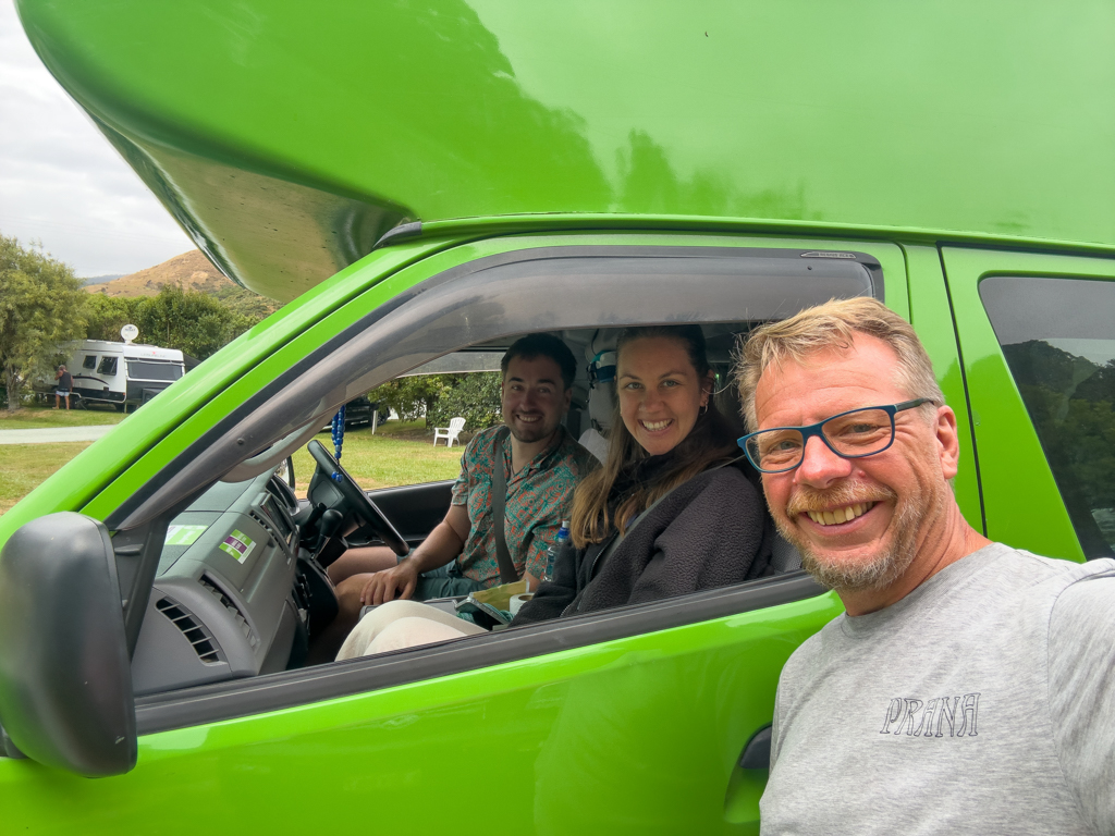 Als Moritz und Sara, unsere jungen Nachbarn in ihrem grünen Jucy Camper, lostuckern, winken sie noch kurz zum Abschied. Jo lässt es sich nicht nehmen, sich kurz von den beiden zu verabschieden. Der lustige Moritz, der gestern nach oldschool ein Reisetagebuch von Hand geschrieben hat, meint noch fröhlich zu Jo, dass er im Sommer «Matros auf dem Tsürisee» sei und wir uns doch bei einer gemütlichen Schifffahrt wieder sehen können. «Das ist doch meeega!» meint Jo dazu. «Das machen wir.»